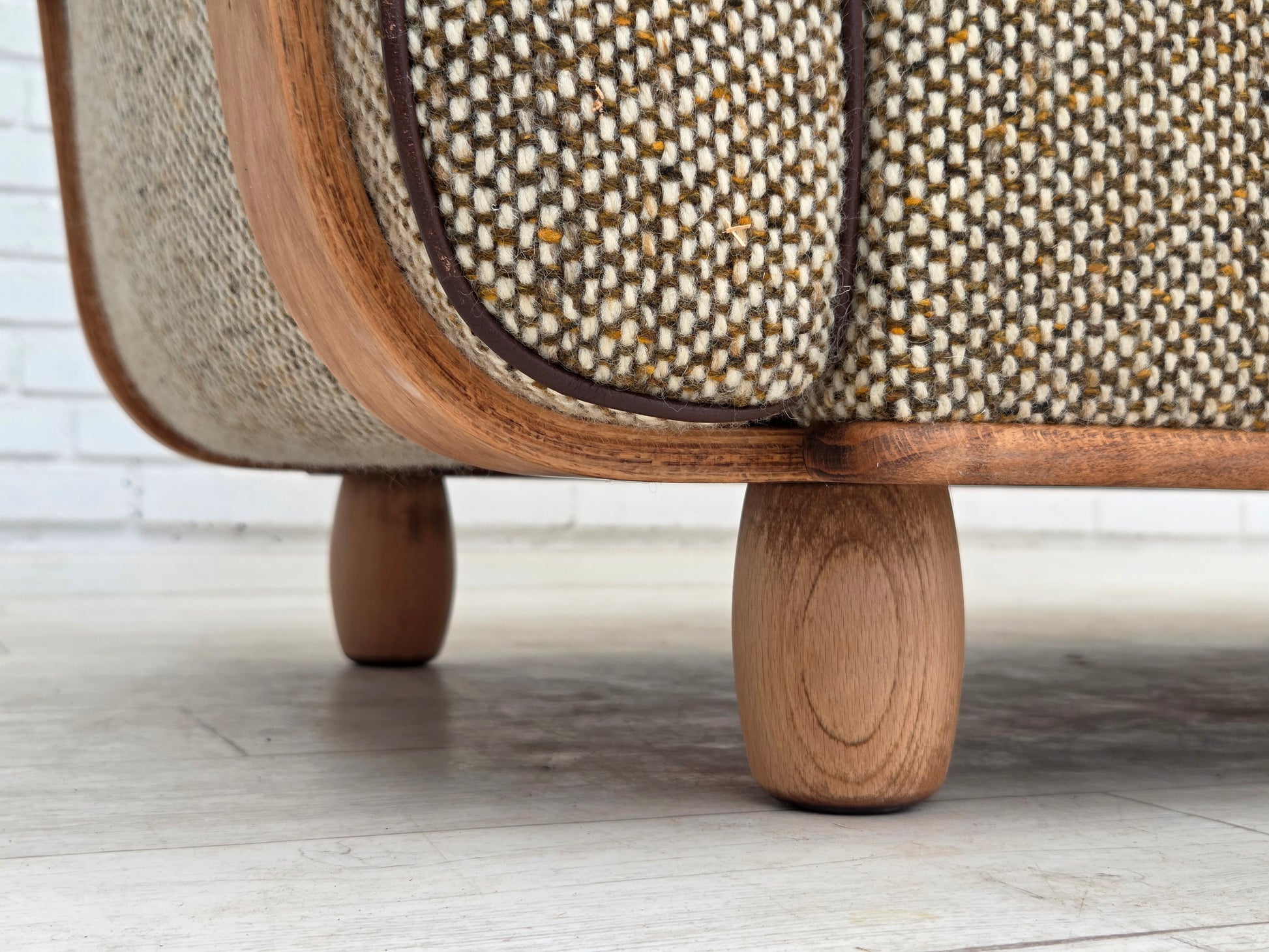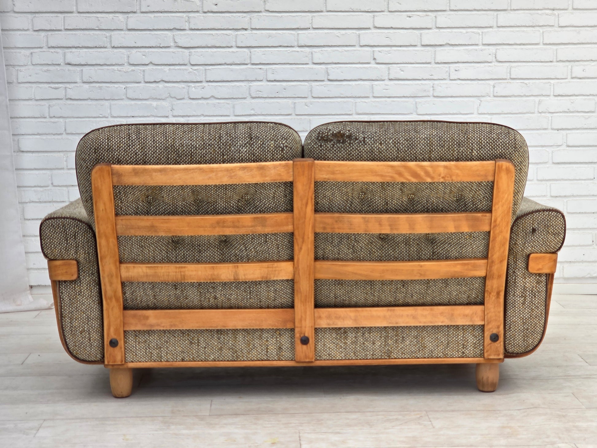 DESCRIPTION: 1970s, Danish 2-seater sofa. Original good condition: no smells, no stains and stable construction. Original brown/beige furniture wool, bent wood, beech wood. Manufactured by Danish furniture maker in about 1970-75s. Original Scandinavian vintage design directly from Denmark. The sofa was checked by craftsman.