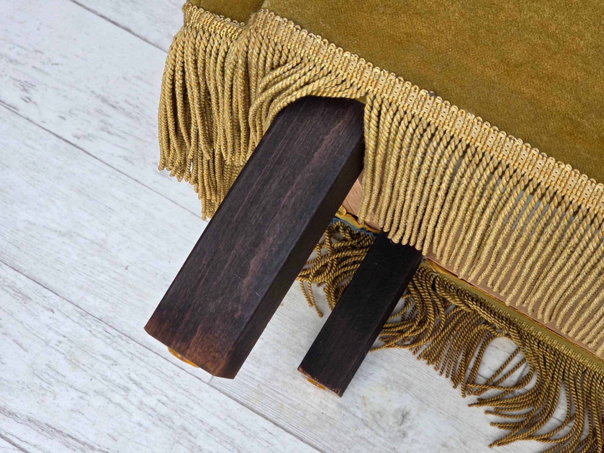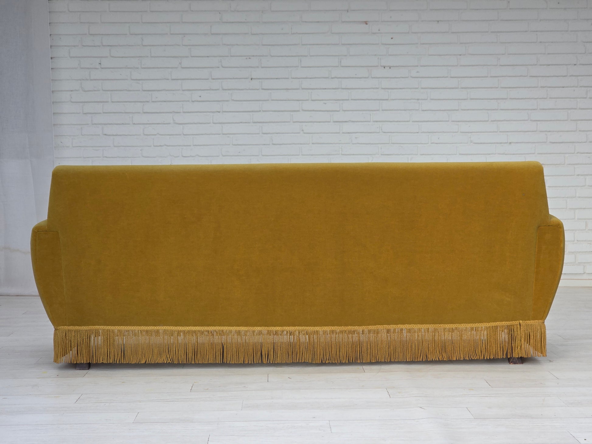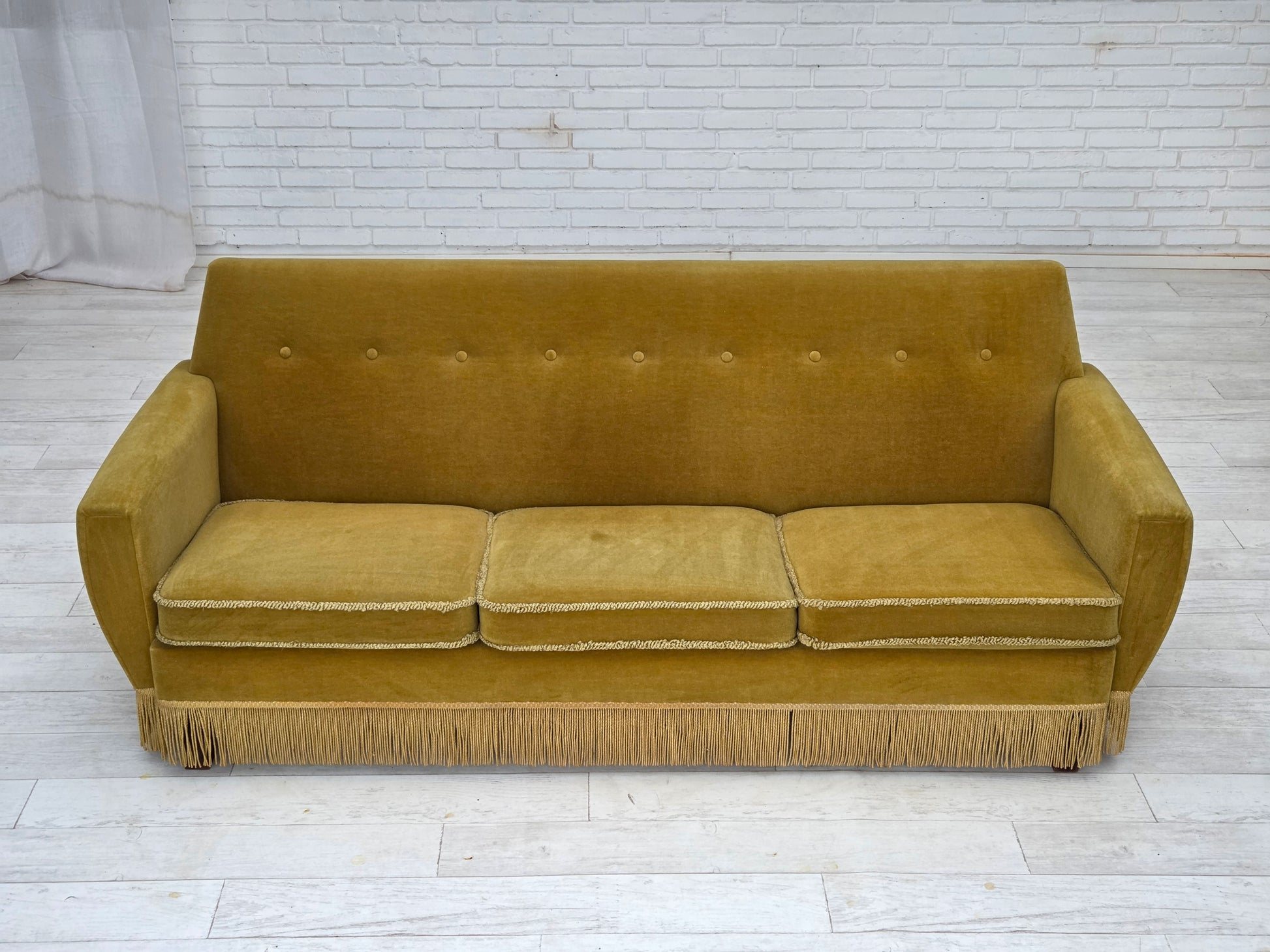 DESCRIPTION: 1970s, Danish 3-seater sofa. Original light green furniture velour, beech wood legs, springs in the seat cushions. Original good condition: no smells, no stains and stable construction. Manufactured by Danish furniture maker in about 1975-80s. Original Scandinavian vintage design directly from Denmark. The sofa was checked by craftsman.