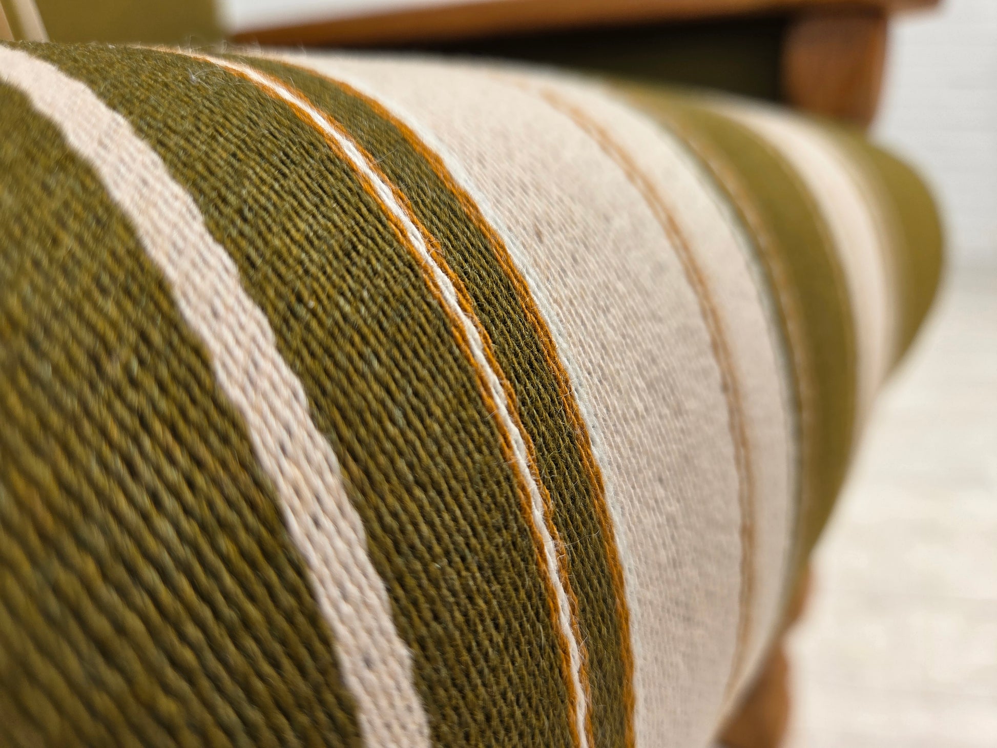 1970s, Danish armchair, original condition, furniture wool, solid oak wood.
