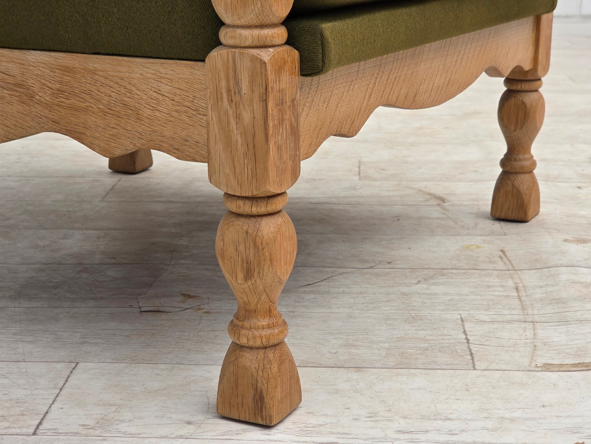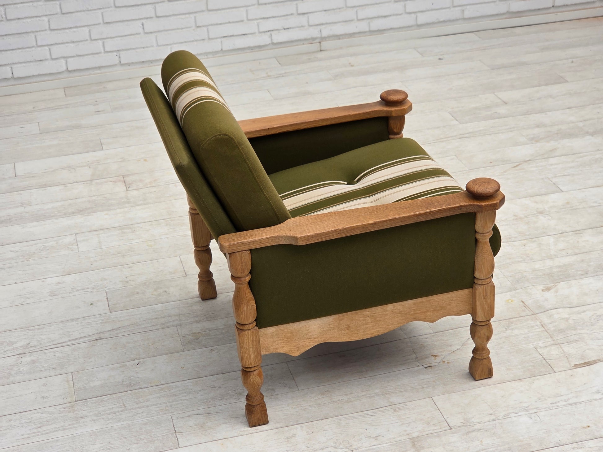 DESCRIPTION: 1970s, Danish armchair. Original very good condition: no smells, no stains and stable construction. Original green furniture wool, solid oak wood, springs in the seat. Manufactured by Danish furniture maker in about 1970-75s. Original Scandinavian vintage design directly from Denmark. The chair was checked by craftsman.