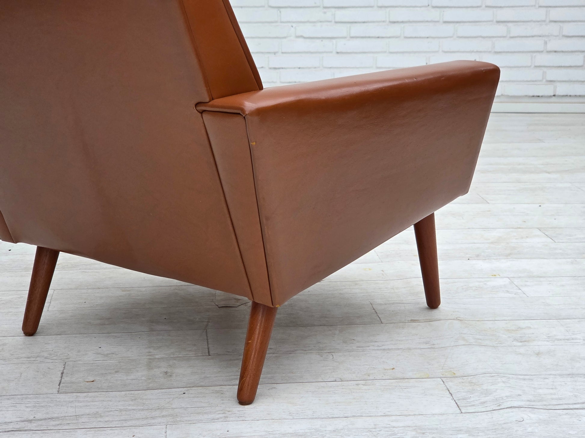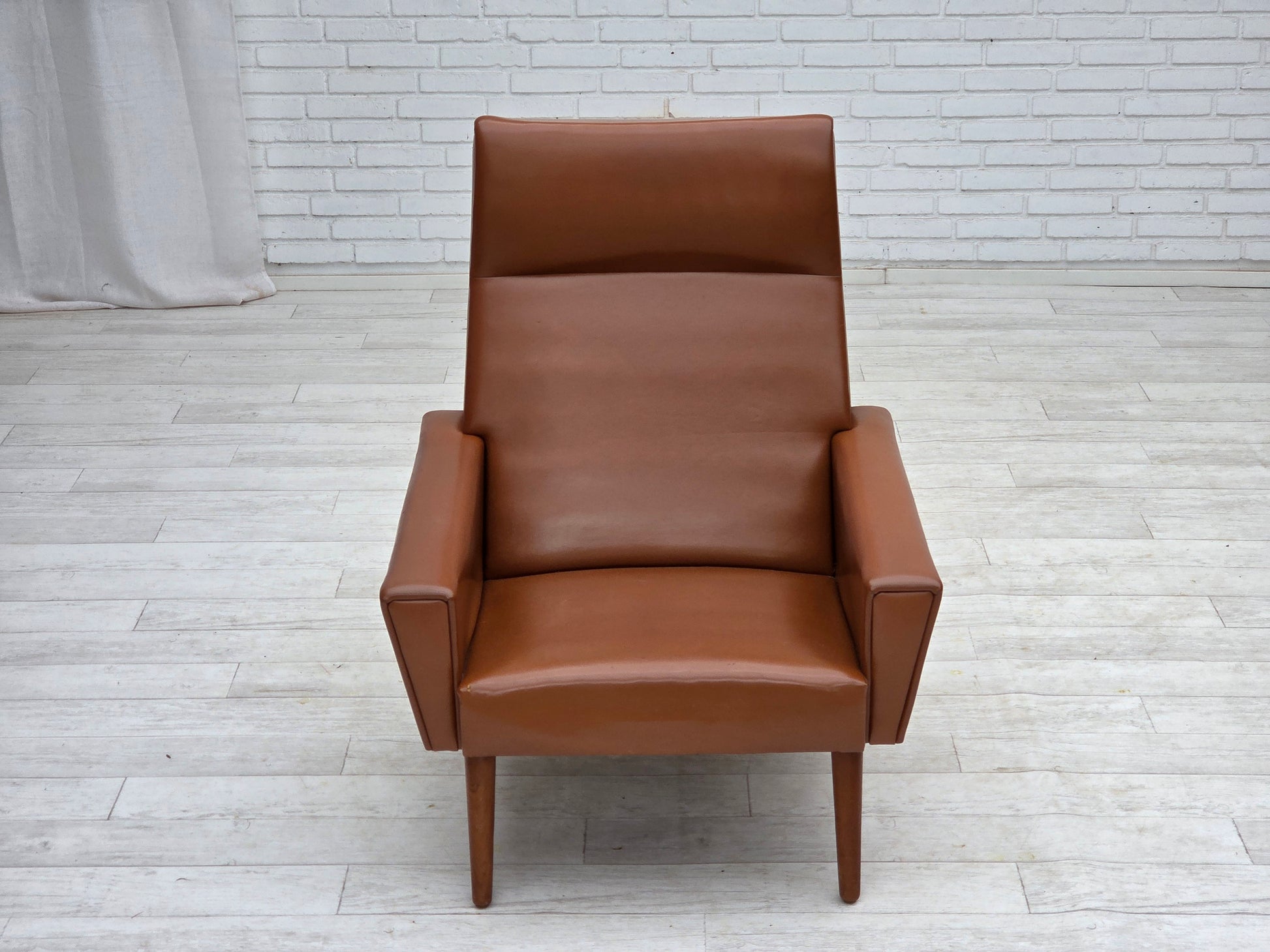 DESCRIPTION: 1970s, Danish highback armchair by Vejen Polstermøbelfabrik. Original good condition: no smells, no stains and stable construction. Some wear such as scratches and other signs of ageing. Original artificial leather, teak wood legs. Manufactured by Danish furniture maker Vejen Polstermøbelfabrik in about 1970-75s. Original Scandinavian vintage design directly from Denmark. The chair was checked by craftsman.