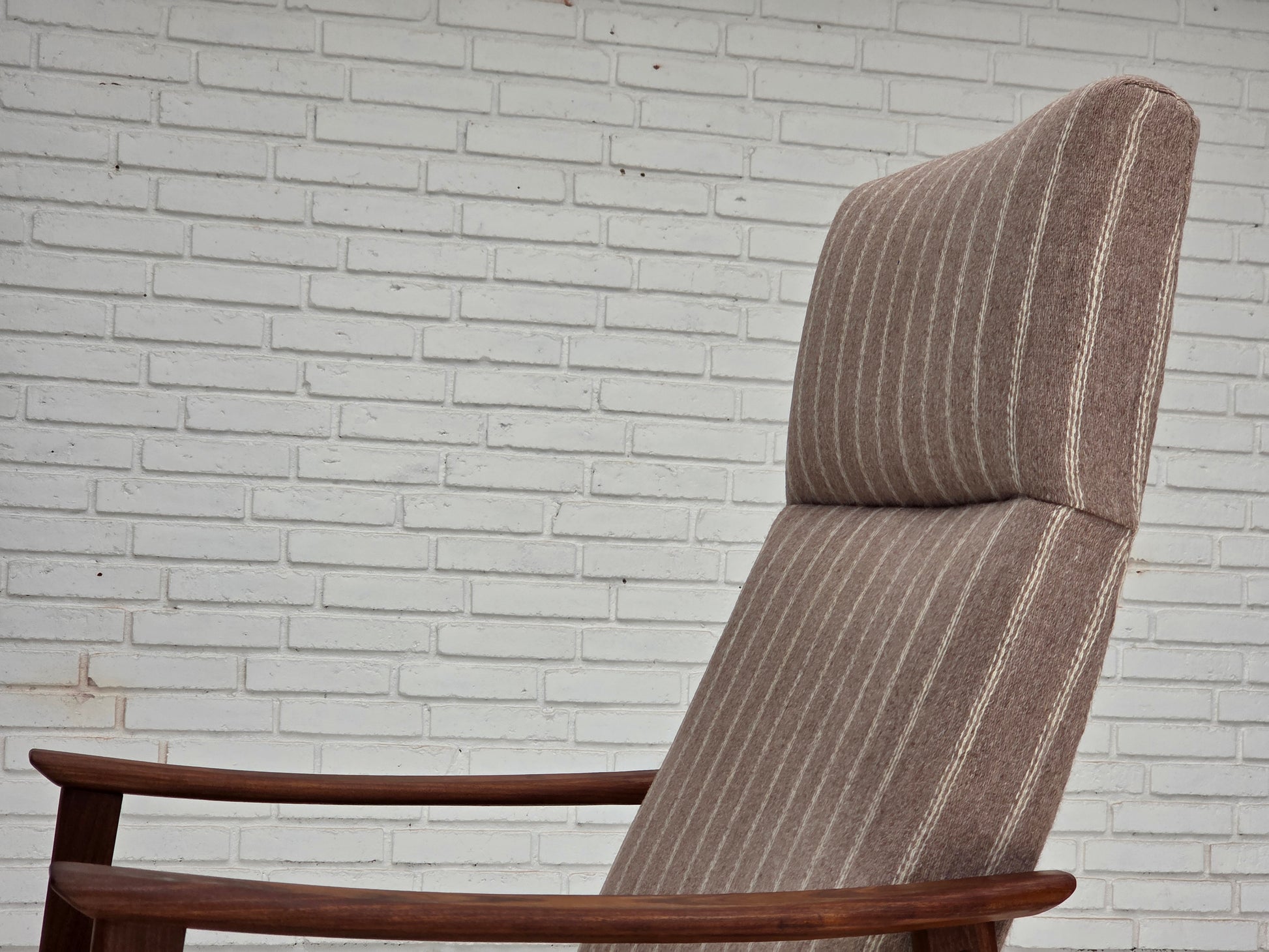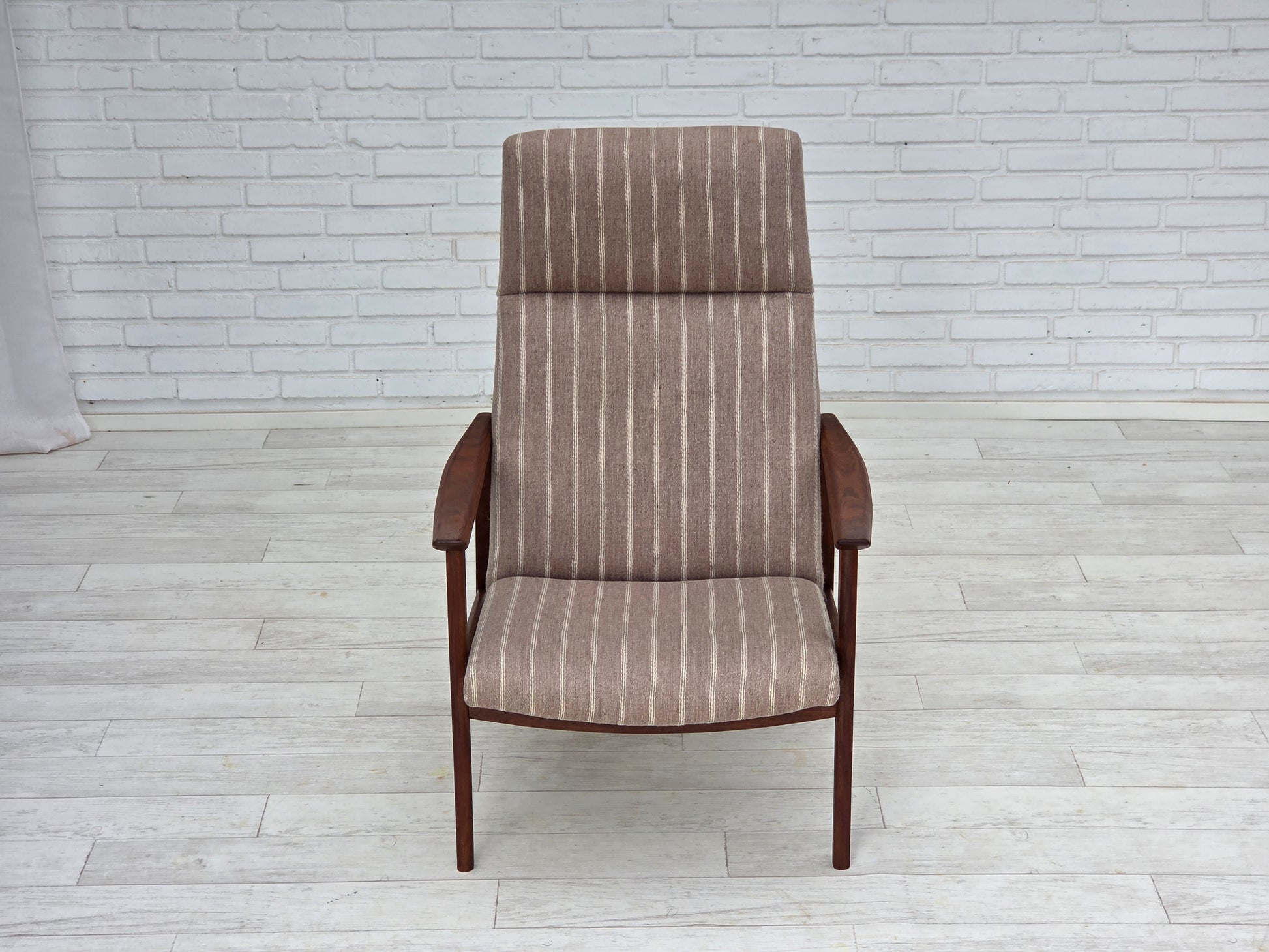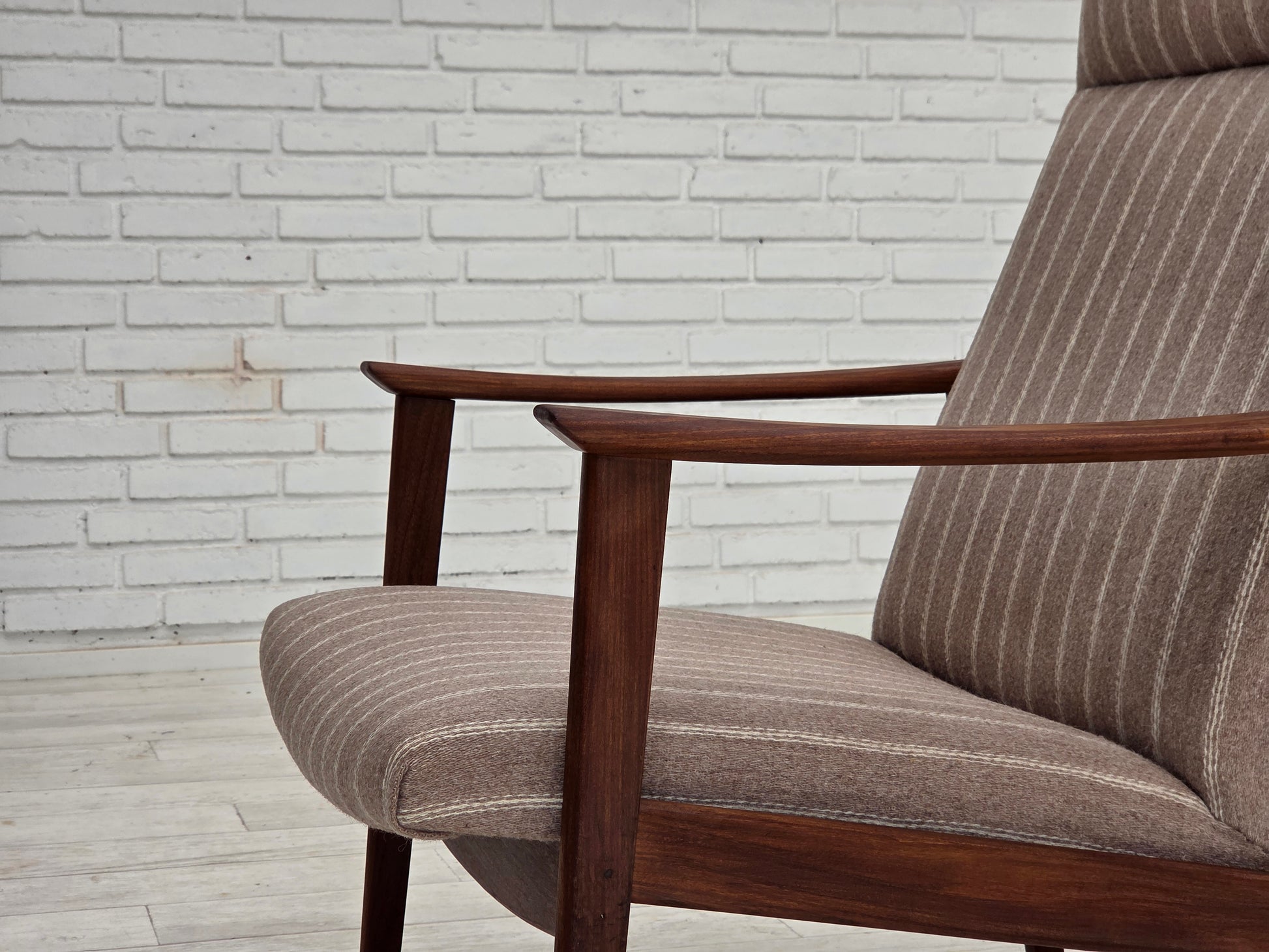 1970s, Danish highback armchair, furniture wool, teak wood, original.