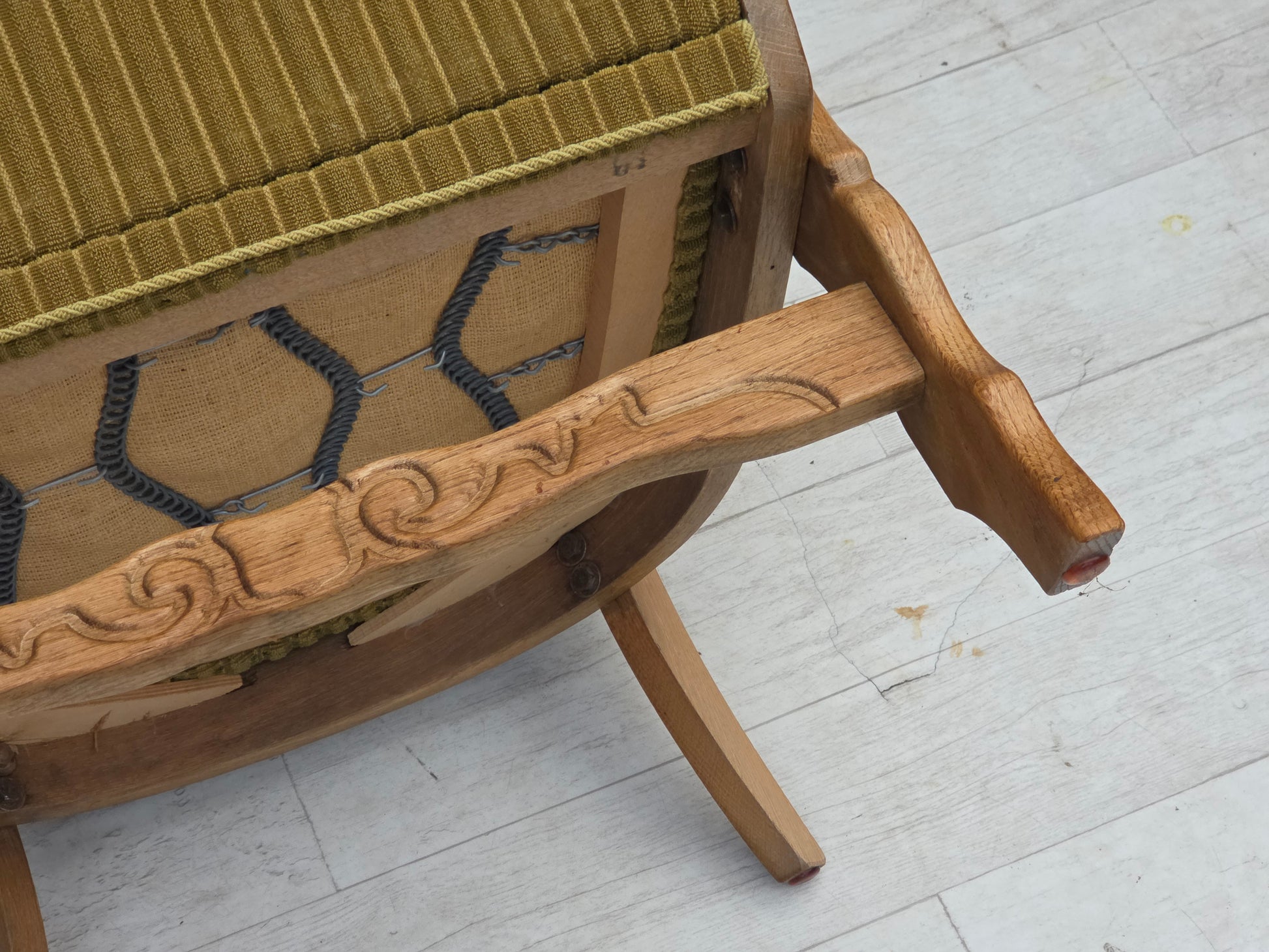 DESCRIPTION: 1970s, Scandinavian armchair. Original green furniture cotton/wool fabric, solid oak wood, springs in the seat. Manufactured by Danish or Swedish furniture maker in about 1965-70s. Original very good condition: no smells, no stains and stable construction. The chair was checked by craftsman. Original Scandinavian vintage design directly from Denmark. The chair was checked by craftsman.