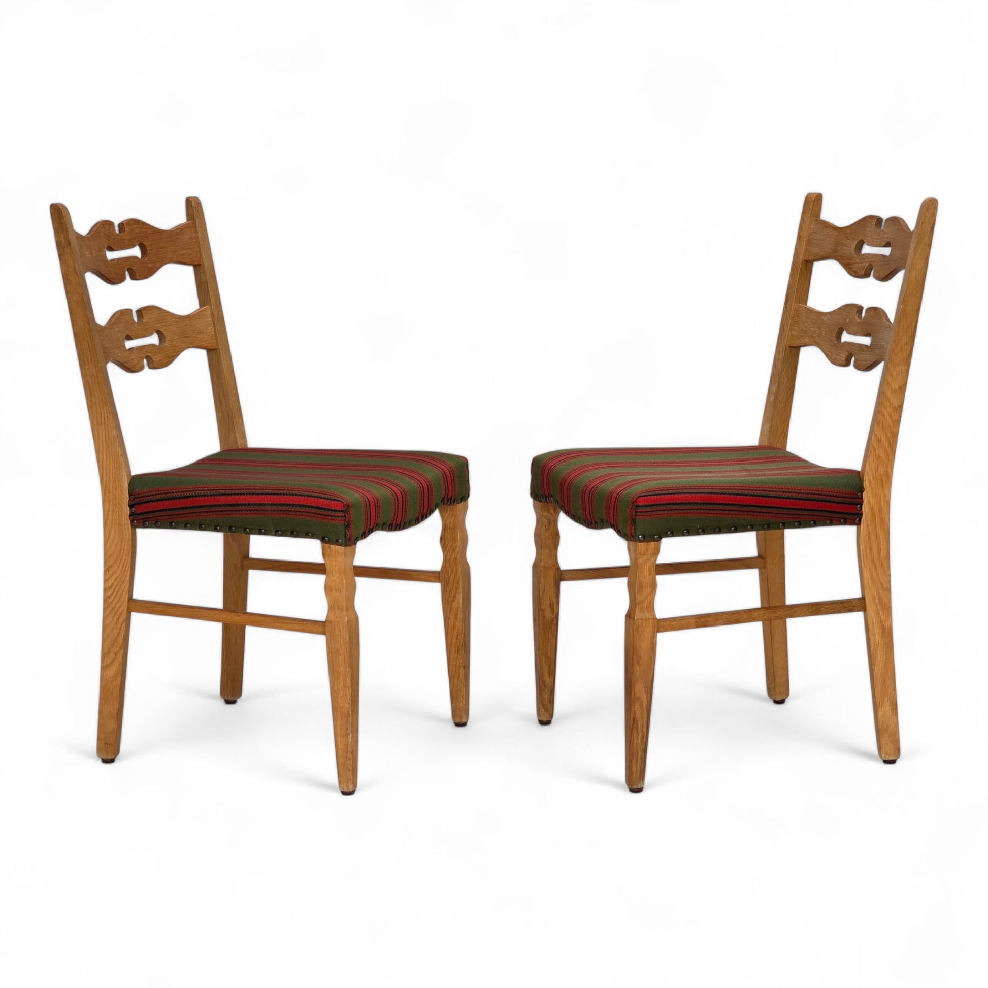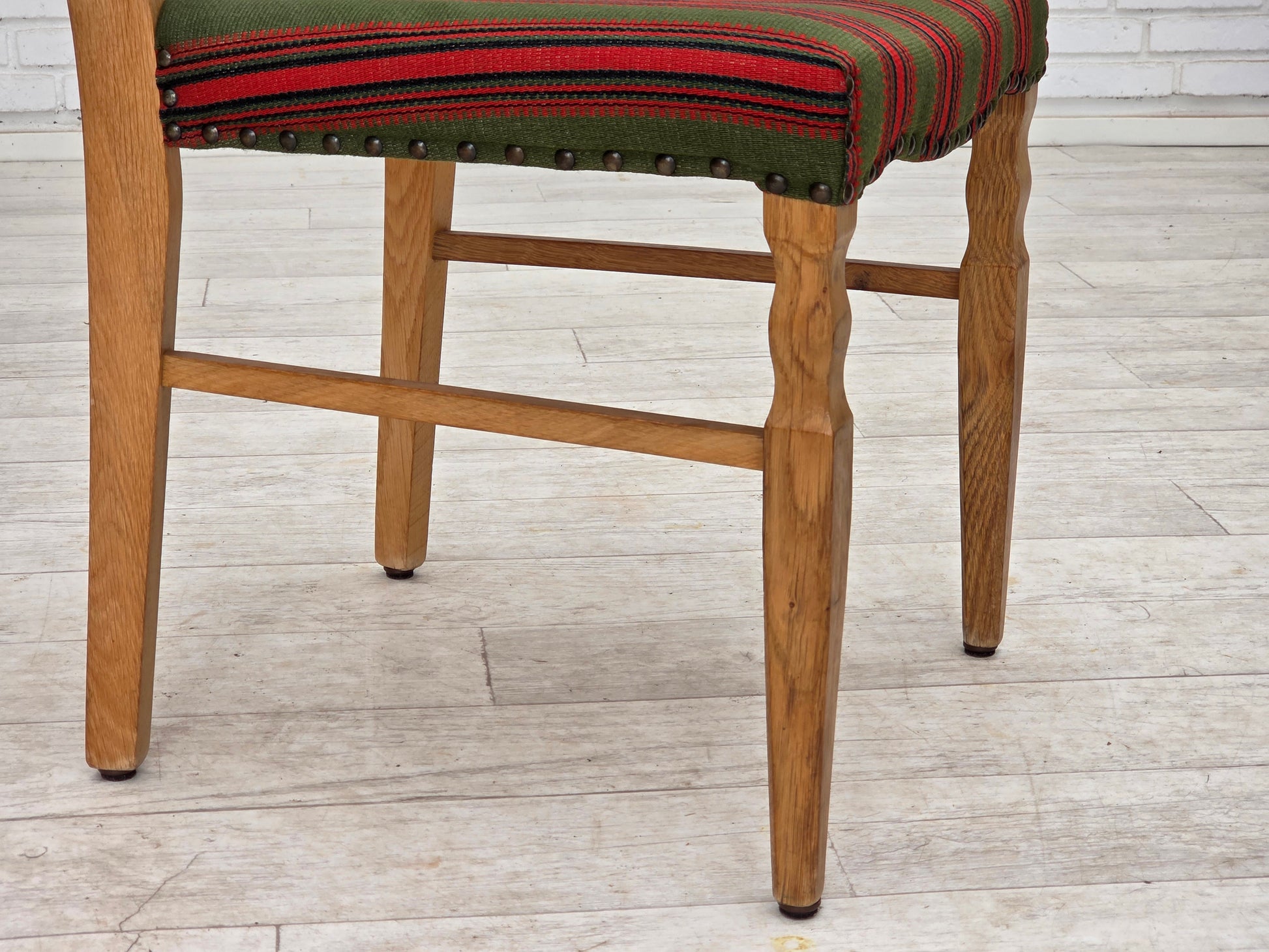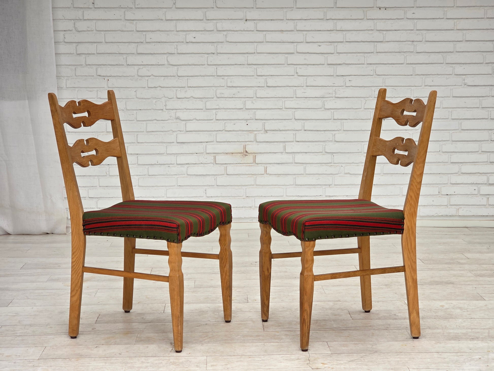 1970s, set of 2 Danish dining chairs, furniture wool, solid oak wood.